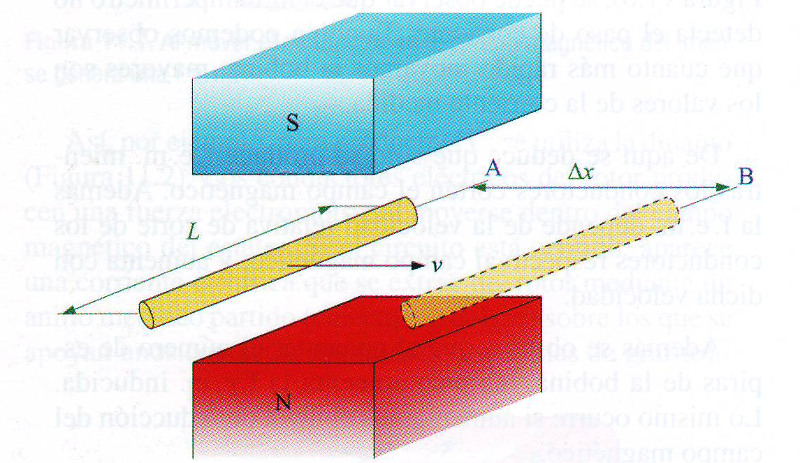 La fórmula de la f.e.m. inducida también se puede expresar de esta forma. Para un conductor de longitud L que se desplaza perpendicularmente a las líneas de un campo magnético de inducción B a una velocidad v, tenemos que: