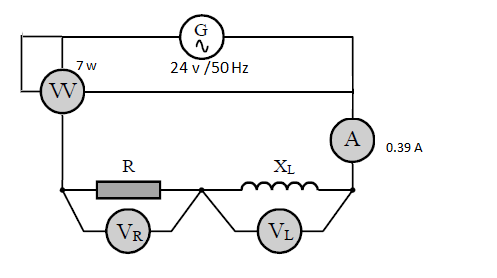 Se desea conocer los valores característicos y el circuito equivalente de la bobina de un contactor electromagnético. Para ello se realiza un ensayo en el laboratorio de Electrotecnia que consiste en alimentarla a 24 v / 50 Hz y medir la intensidad de corriente y la potencia activa. Las lecturas obtenidas en los aparatos de medida son 0.39 A y 7 w.