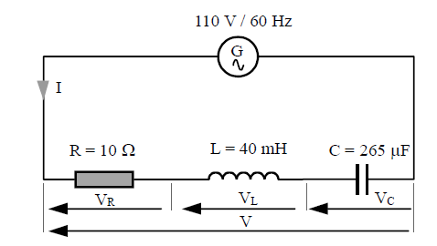 En la figura de abajo se ha dibujado el diagrama vectorial correspondiente a este circuito. Al situar en el diagrama las caídas de tensión en la bobina y condensador (VL y VC) se observa que éstas quedan en oposición, por lo que la suma vectorial de estas tensiones se convierte en una resta aritmética.