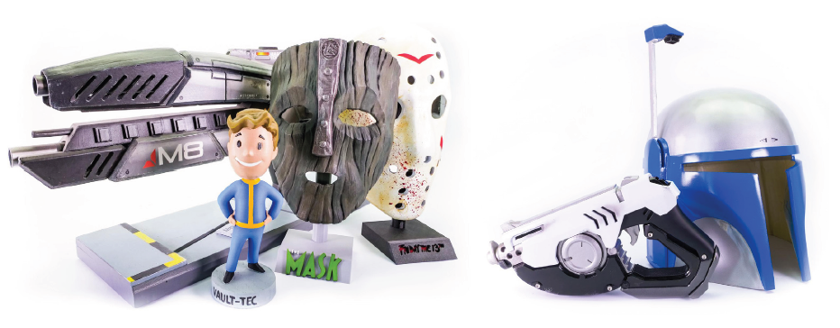 Los aficionados al Cosplay* encontrarán las impresoras 3D especialmente útiles porque se puede usar para fabricar máscaras, equipamiento, accesorios y otros elementos que pueden ser fácilmente procesados (lijados y pintados) para darles un acabado profesional.