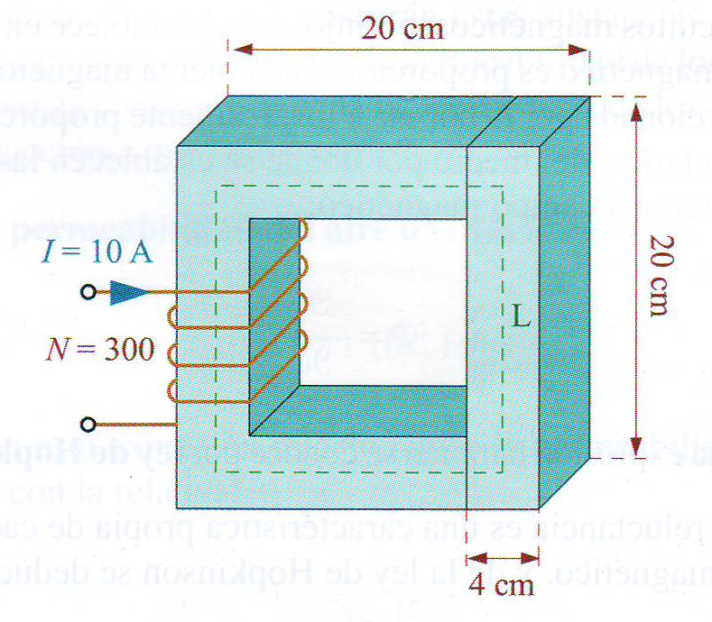 D.0.5. Calcular la reluctancia que posee el núcleo de un electroimán si al hacer circular 5 A por la bobina de 1.000 espiras se ha establecido un flujo magnético de 5 mWb.