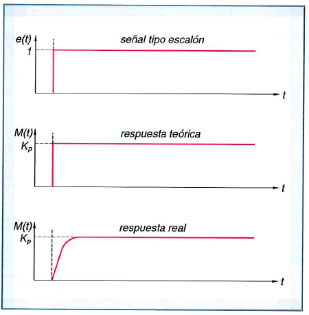 La respuesta en el tiempo del bloque de control proporcional, ante una señal de error del tipo escalón es la siguiente: