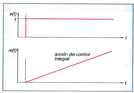 El regulador suministra una acción de control cuyo valor es proporcional a la integral de la señal de error. En este tipo de control la acción varía según la desviación de la señal de salida y el tiempo durante el que esta desviación se mantiene.
