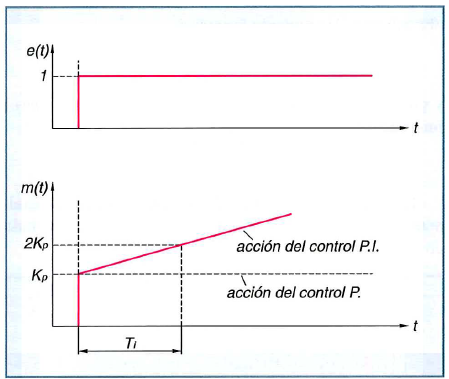 Respuesta de un controlador proporcional e integral ante una señal de error del tipo escalón: