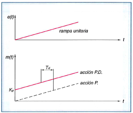 La respuesta de un controlador proporcional y derivativo ante una señal de error del tipo rampa unitaria: