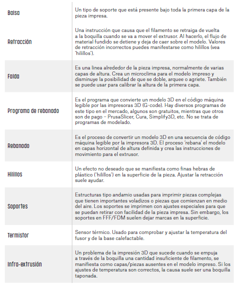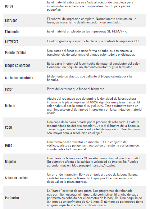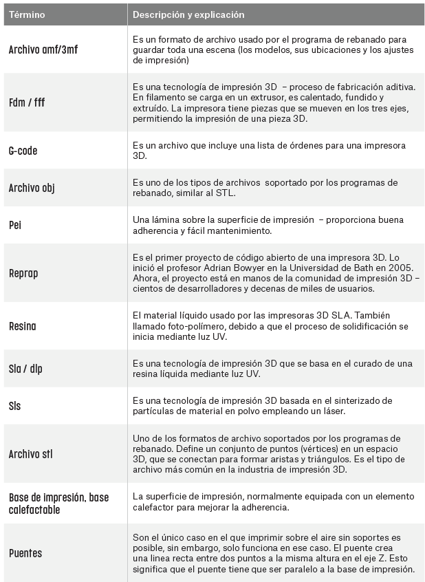 Puedes encontrar los términos más empleados y su explicación en la tabla siguiente.
