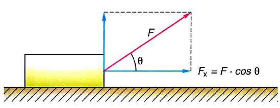 Cuando una fuerza “F” actúa sobre un cuerpo y lo desplaza una distancia “d” en una dirección, que forma un ángulo con respecto a se dice que realiza un trabajo.