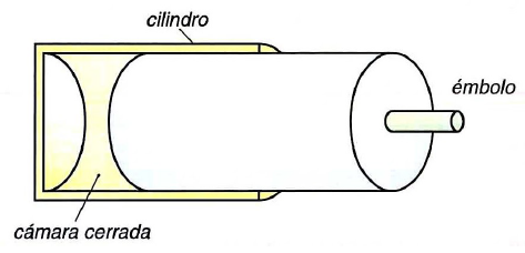 Supongamos un émbolo dentro de un cilindro formando una cámara cerrada, como por ejemplo ocurre con el pistón de un automóvil o con un cilindro neumático, de tal forma que el gas contenido en la cámara ejercerá una presión sobre el émbolo y las paredes del cilindro.