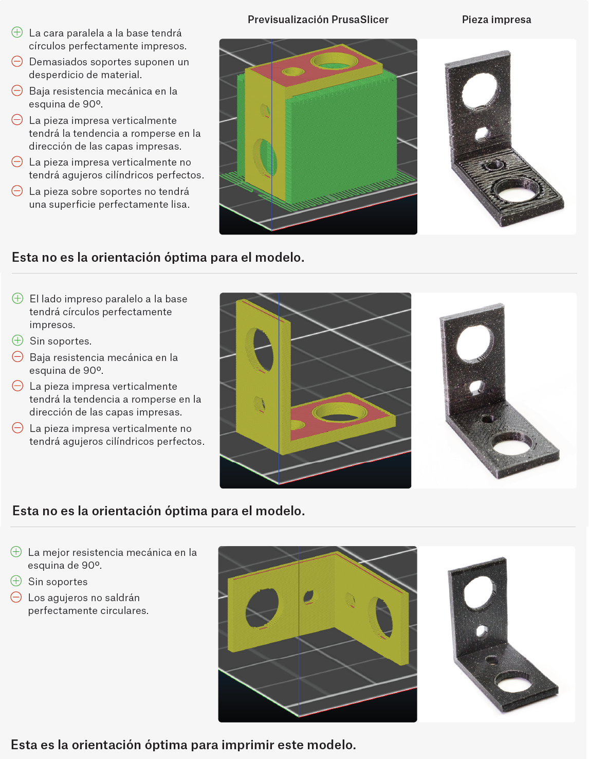 Veamos la forma de una prensa con forma de L con dos agujeros en ambos extremos y cómo la orientación de la pieza afecta al resultado final. Y no sólo afecta al aspecto- la forma en la que orientamos una pieza también afecta a su integridad estructural y resistencia.